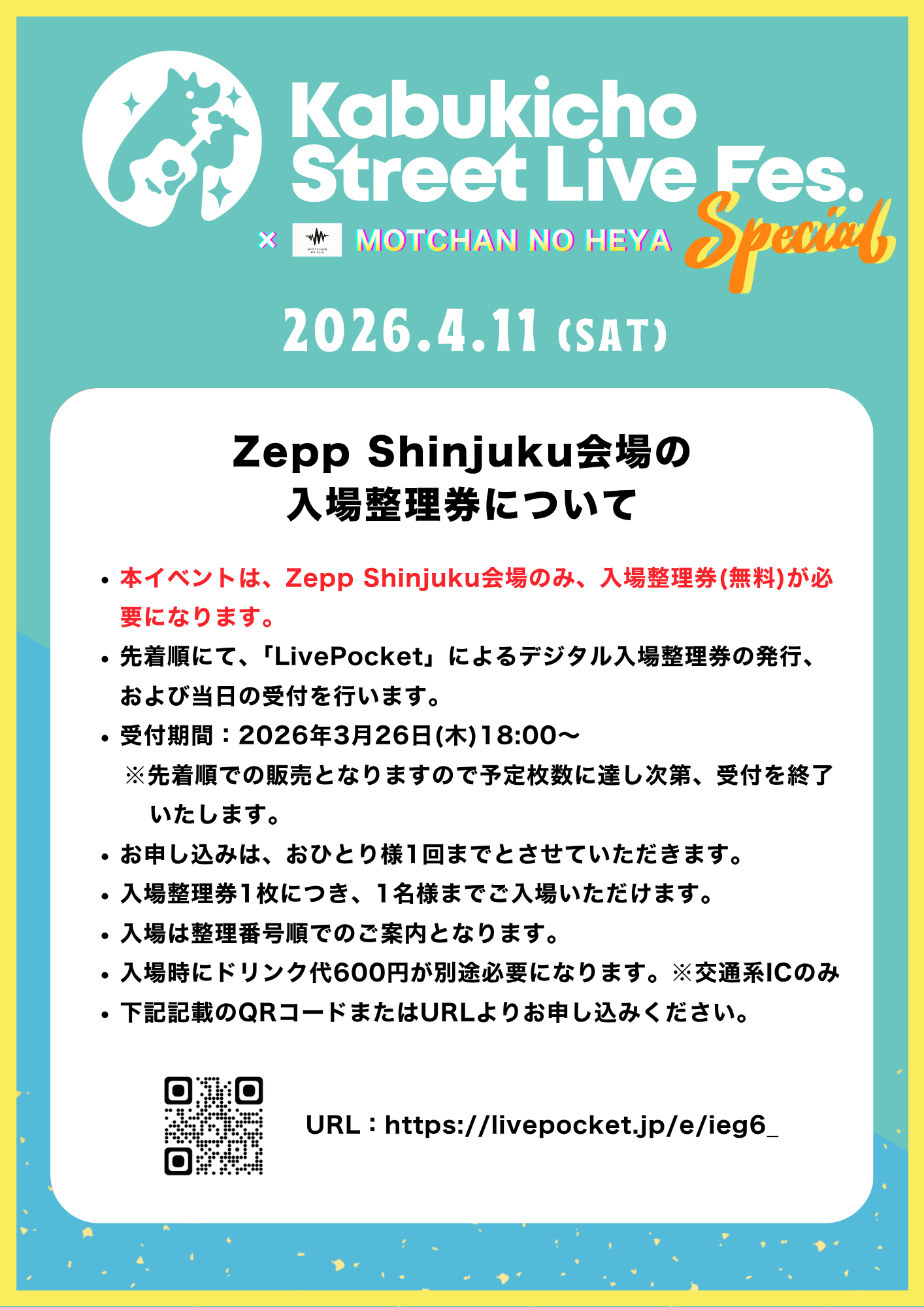 ※その他、注意事項詳細は後日オフィシャルサイトにてご案内いたします。必ずご確認をお願いいたします。